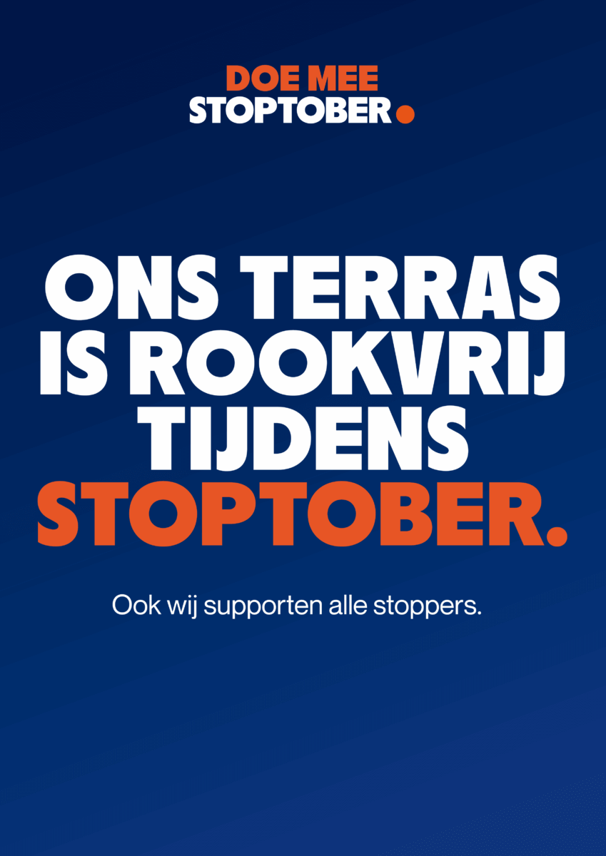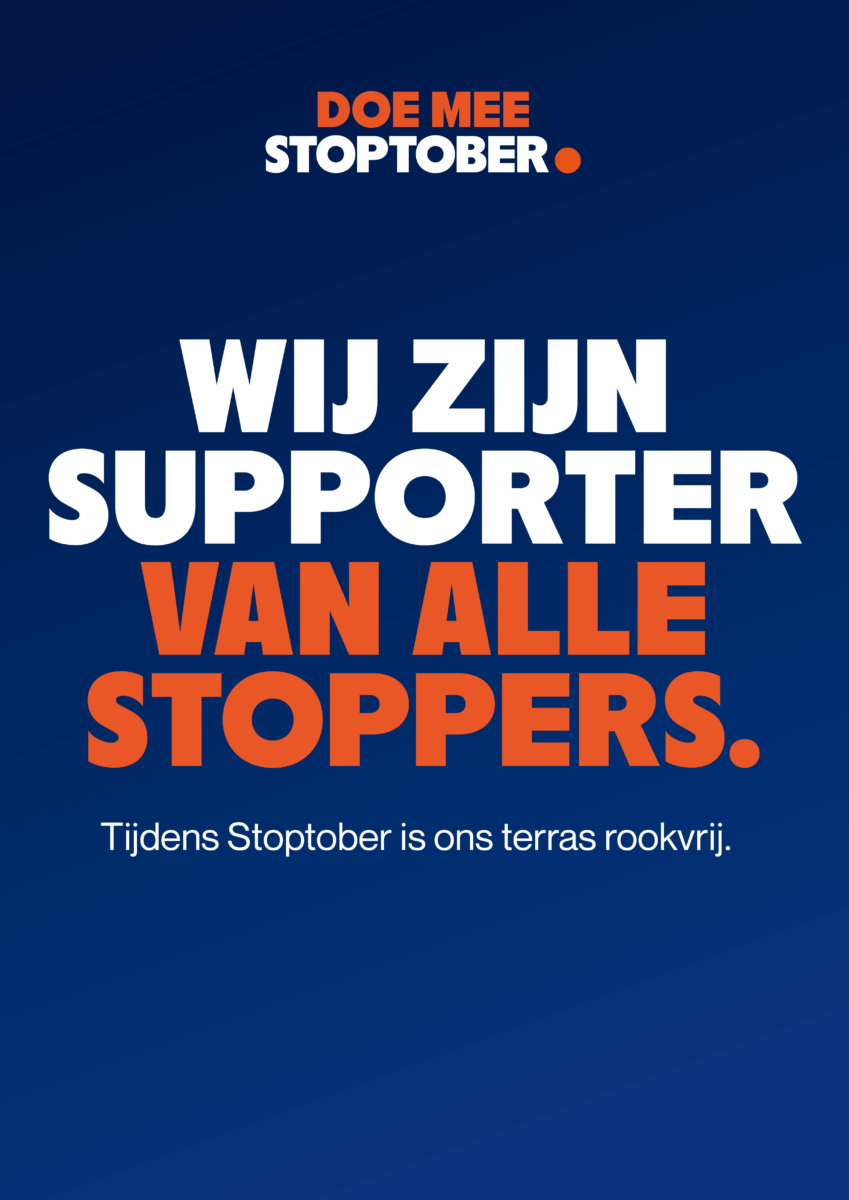 Een poster om te laten zien dat je als organisatie stoppers support tijdens Stoptober met je rookvrije terras.