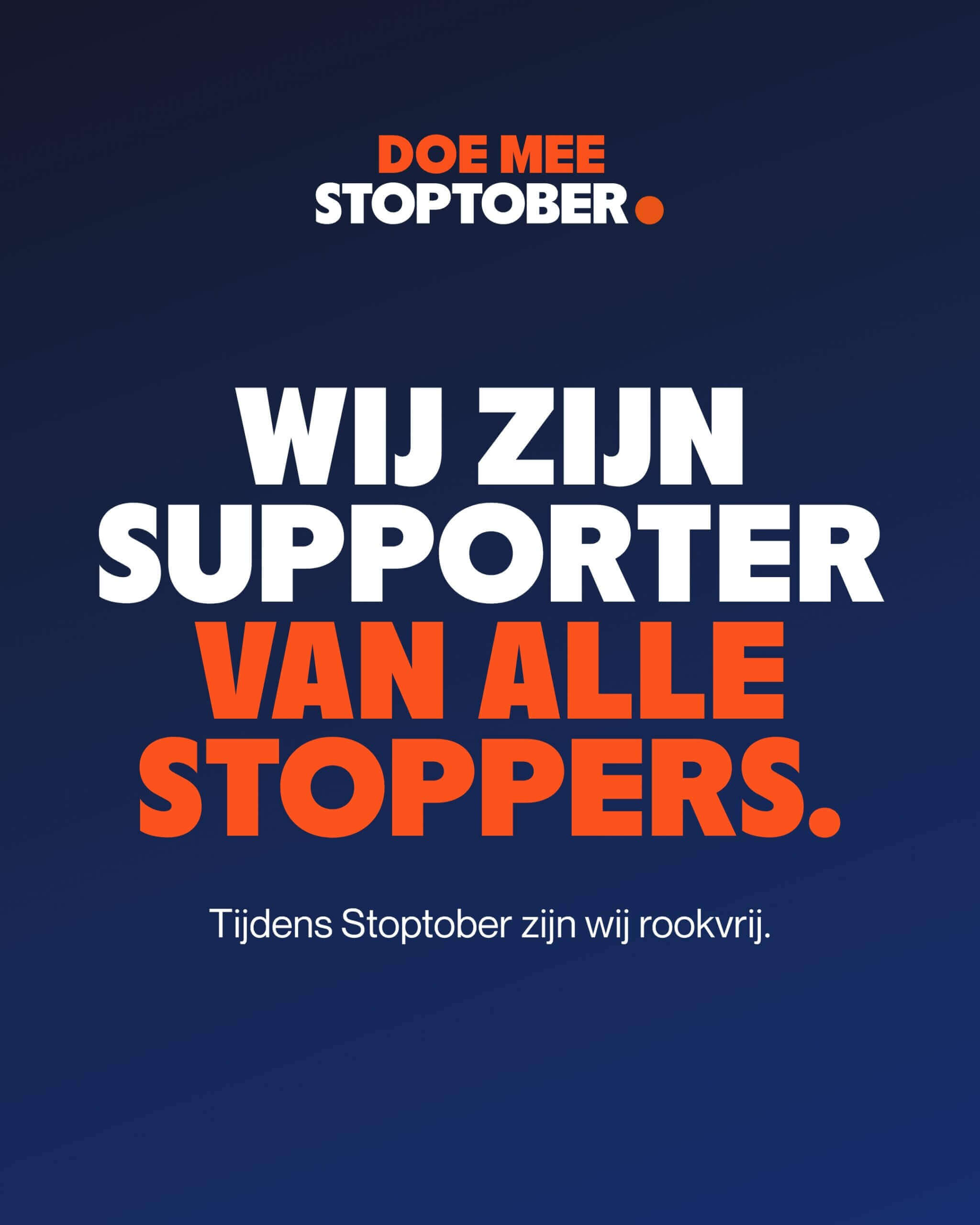Een 4:5 social post om te laten zien dat je als organisatie stoppers support tijdens Stoptober met je rookvrije omgeving.