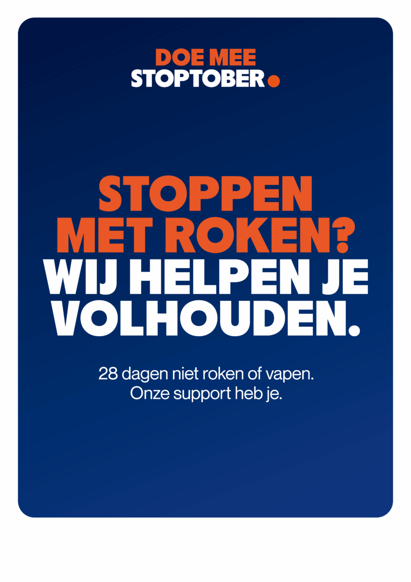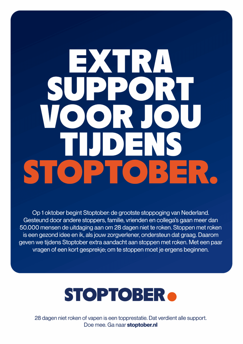 Een poster om te laten zien dat je als zorginstelling stoppers support tijdens Stoptober.